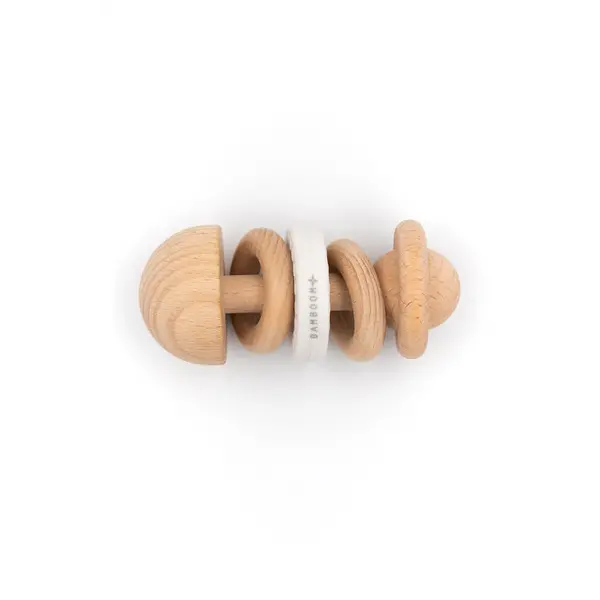 Bamboom | Hochet en bois et silicone blanc