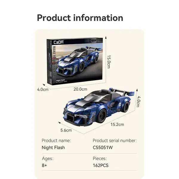 Caractéristiques de ce CaDA | 1:32 Car Series - Night Flash 162 pièces Échelle 1:32 :