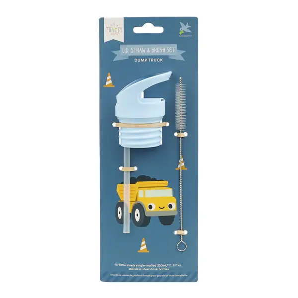 A Little Lovely Company | Ensemble bouchon, paille et brosse « Camion à benne basculante »