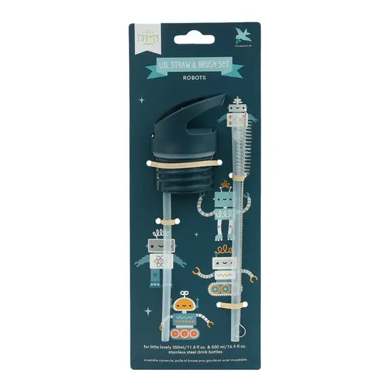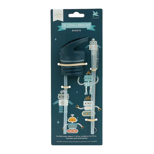 A Little Lovely Company | Ensemble bouchon, paille et brosse Robots