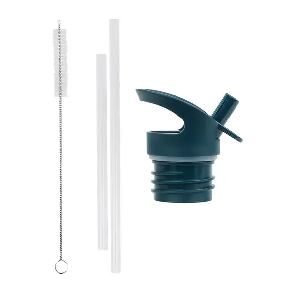 Kit pour gourdes comprenant un bouchon, une paille et une brosse, destiné aux gourdes à double paroi en acier inoxydable de 350 et 500 ml de la marque A Little Lovely Company.