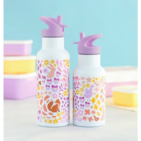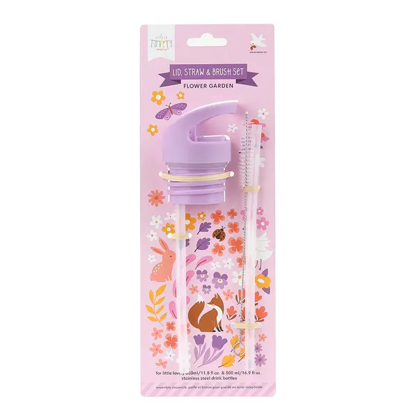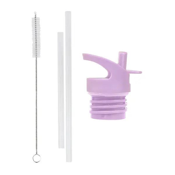 Set pour bouteilles réutilisables comprenant un bouchon lilas, une paille et une brosse pour les bouteilles en acier inoxydable de 350 et 500 ml de A Little Lovely Company.
