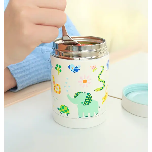 Caractéristiques de ce pot alimentaire isotherme en acier inoxydable Jungle de A Little Lovely Company :