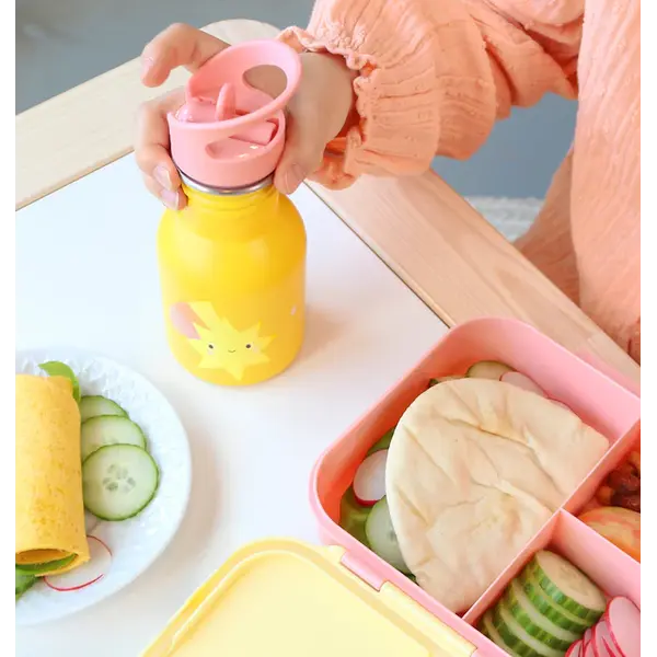 Cette petite gourde en acier inoxydable de la collection « mini » est facile à tenir pour les tout-petits. Elle est à simple paroi et a une contenance de 350 ml. Elle se glisse parfaitement avec une boîte à lunch dans le sac assorti.