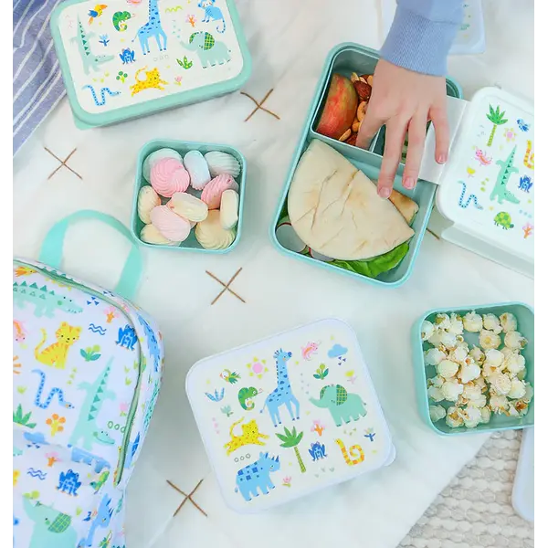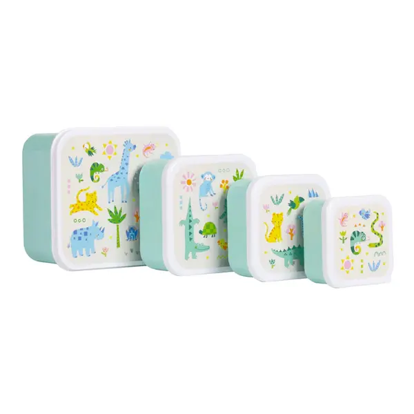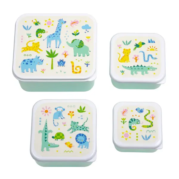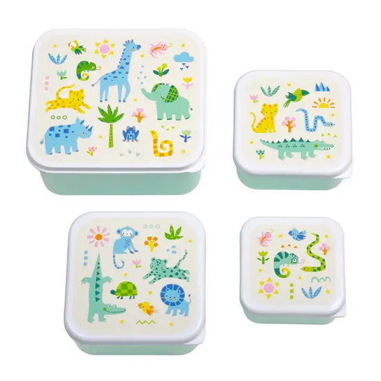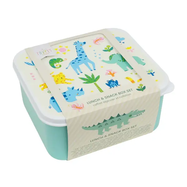 Caractéristiques de ce coffret de boîtes à lunch et à collation Jungle de A Little Lovely Company :