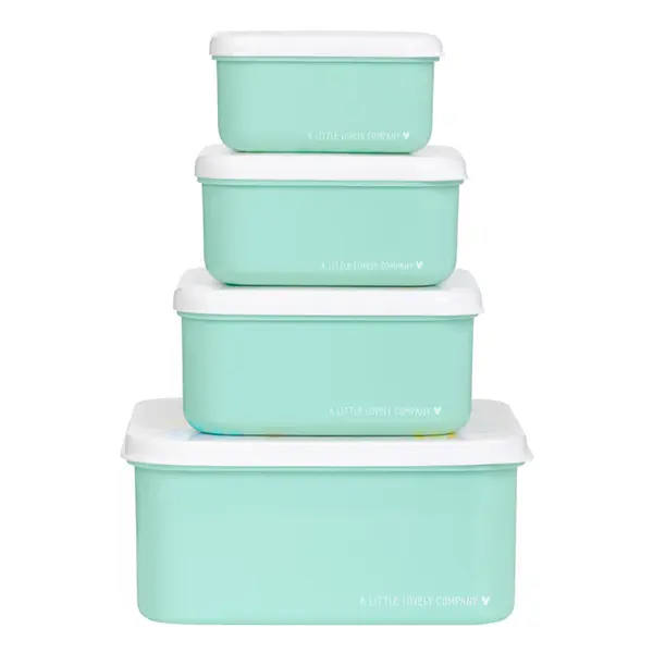 Cet ensemble de boîtes à lunch et à collation est idéal à emporter à l'école ou en déplacement. L'ensemble se compose de quatre boîtes de différentes tailles. La languette sur le côté permet de les ouvrir et de les fermer facilement, et elles s'empilent facilement pour un rangement pratique.