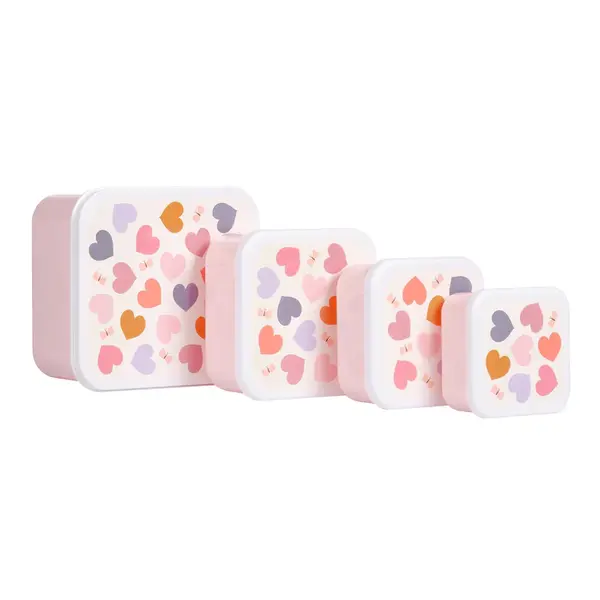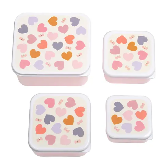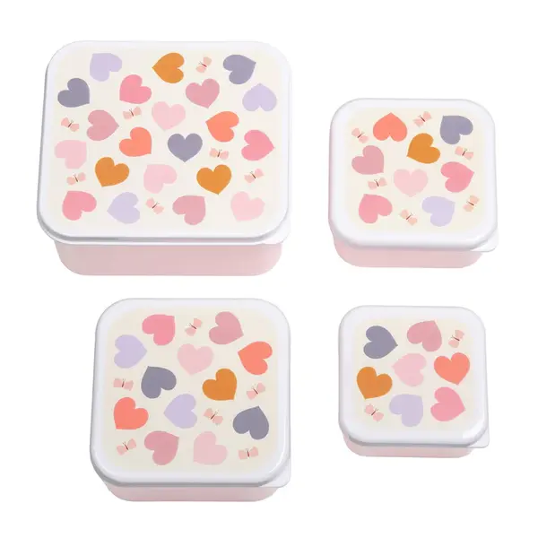 Caractéristiques de ce coffret de boîtes à lunch et à collation « Cœurs » de A Little Lovely Company :