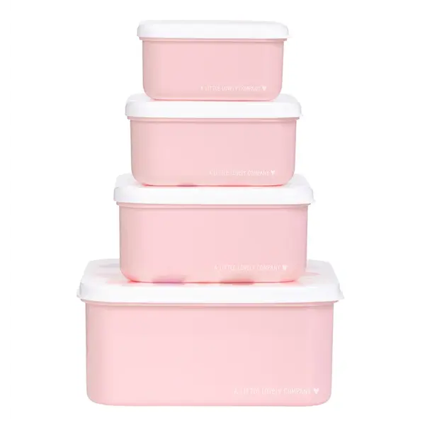 Cet ensemble de boîtes à lunch et à goûter est idéal à emporter à l'école ou en déplacement. L'ensemble se compose de quatre boîtes de différentes tailles. La languette sur le côté permet de les ouvrir et de les fermer facilement, et elles s'empilent facilement pour un rangement pratique.