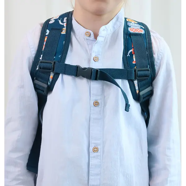 Ce sac à dos spacieux est idéal pour aller à l'école ou partir en voyage. Il dispose d'un grand compartiment principal avec une poche intérieure supplémentaire, d'une poche avant isotherme pour garder vos collations au frais et de deux poches latérales ouvertes. Il offre suffisamment d'espace pour une boîte à goûter, une collation et une gourde. Le sac à dos est équipé de bretelles rembourrées et d'une sangle de poitrine, afin qu'il ne glisse pas facilement des épaules. Le panneau dorsal est rembourré d'un tissu respirant pour plus de confort.