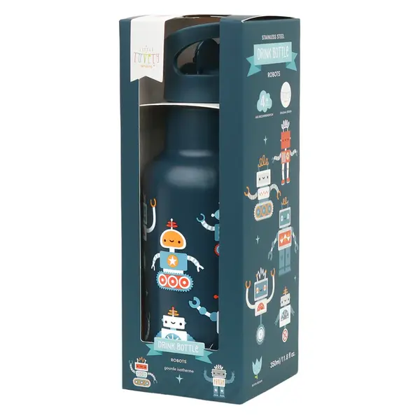Caractéristiques de cette bouteille en acier inoxydable « Robots » de A Little Lovely Company :