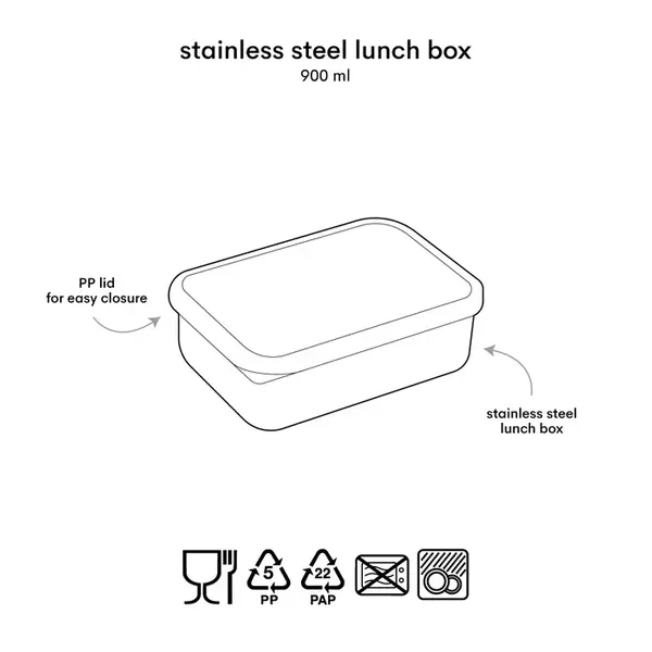 - Matériau : Acier inoxydable/PP Boîte à lunch : acier inoxydable, couvercle : PP (sans BPA ni phtalates)
