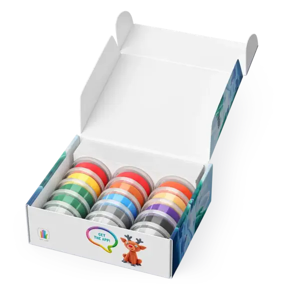 - Contenu : 15 pots de pâte à modeler et un code d'accès à l'application Winter Holidays