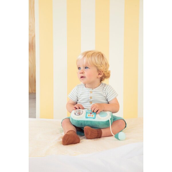 Une adorable petite radio en tissu pour éveiller les sens de votre bébé ! Lorsqu'il la saisit, elle émet des petits sons joyeux qui attirent son attention et stimulent son ouïe. Douce et à la forme unique, cette petite radio invite votre bébé à découvrir, à développer ses sens et à laisser libre cours à son imagination. Le module sonore est équipé d'un bouton marche/arrêt et est amovible, ce qui permet de le laver facilement en machine.