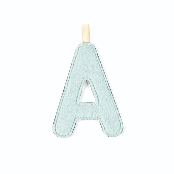 Caractéristiques de ce produit Lilliputiens | Lettre A en tissu phosphorescent bleu réversible :