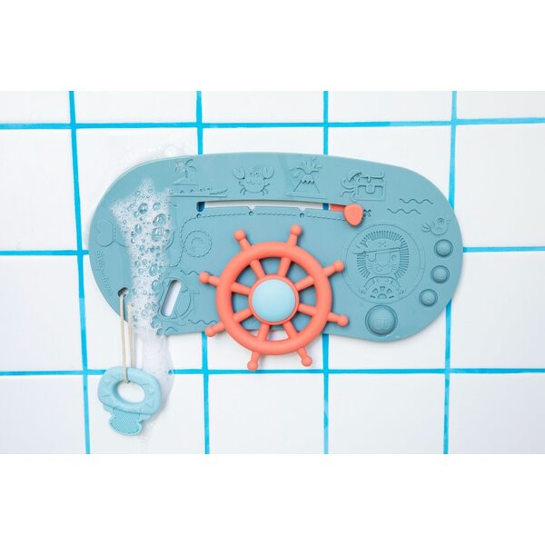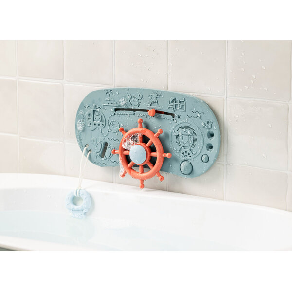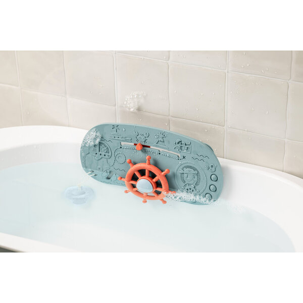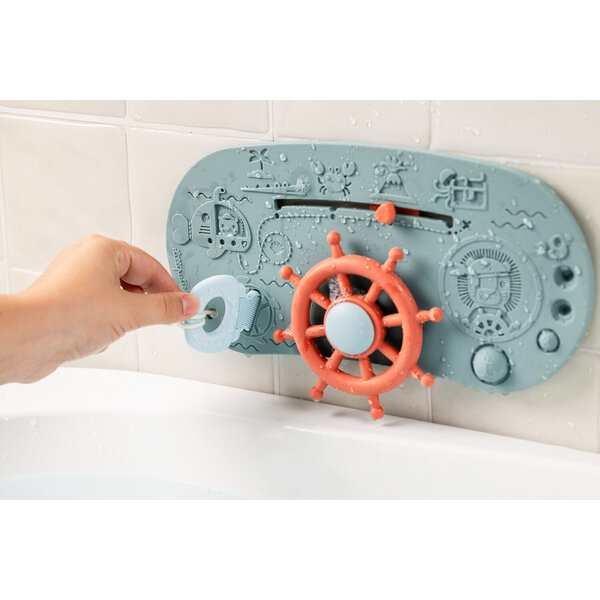 Un panneau de baignoire en silicone qui transforme votre baignoire en bateau pirate : un gouvernail à tourner, une destination à choisir, un bateau à mettre à l'eau et des boutons à découvrir. Un jeu de rôle qui invite à partir à l'aventure.