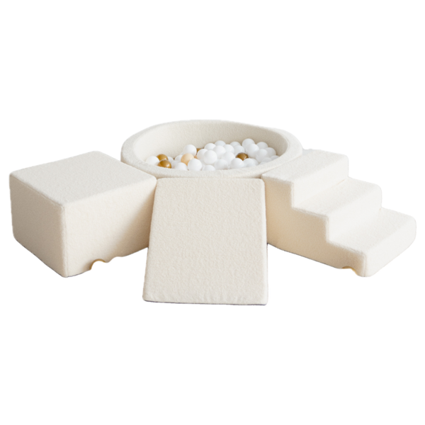 Le set se compose de quatre éléments de formes différentes, parfaits pour grimper, rouler, construire, glisser ou se détendre. Seul ou en combinaison avec une piscine à balles : le plaisir est garanti !