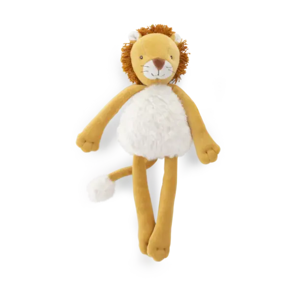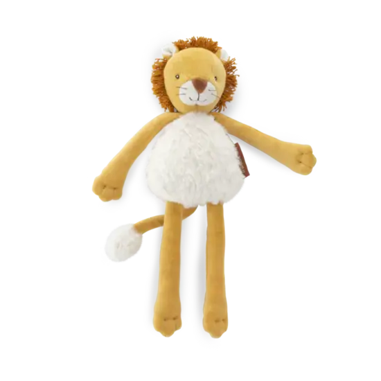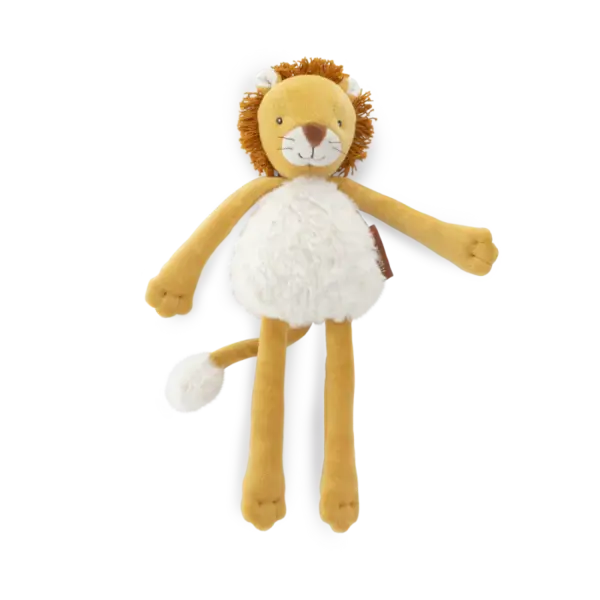 Jouet lion Mamba avec de longues pattes faciles à attraper et un corps doux à câliner. Le jouet est équipé d'une clochette, afin que les bébés puissent le secouer et jouer au rythme de la musique !