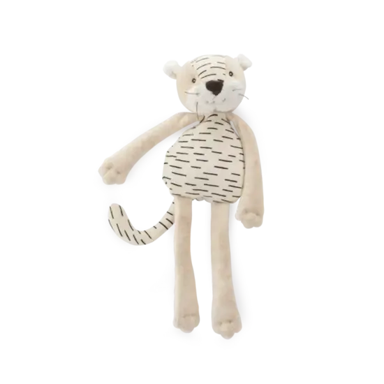 Hochet tigre Baboo avec de longues pattes faciles à attraper et un corps doux à câliner. Grâce à sa clochette, bébé peut le secouer et jouer au rythme de la musique !