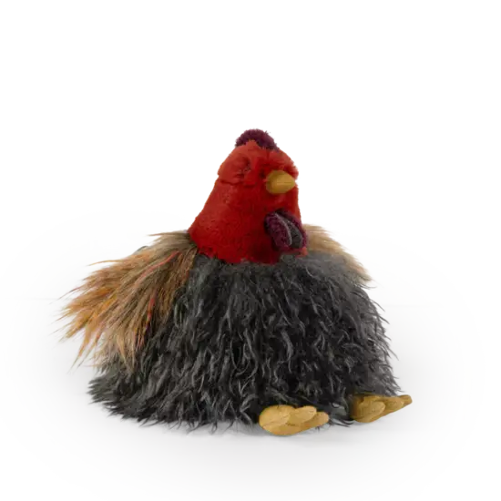 Cocorico ! Ça caquette dans le poulailler et dans les bras des enfants. Cette jolie poule aux longs poils doux est parfaite pour les petits et les grands câlins.