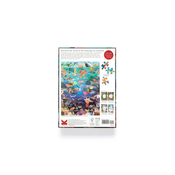 Plongez sous les vagues pour rencontrer 50 habitants extraordinaires de l'océan dans ce puzzle de 1000 pièces. Placez les hippocampes et les poissons-clowns dans les eaux peu profondes, puis voyagez dans les profondeurs pour observer des animaux marins tels que les calmars vampires et les poissons dragons. Découvrez les histoires fascinantes sur la vie marine du monde entier dans le guide poster dépliant.