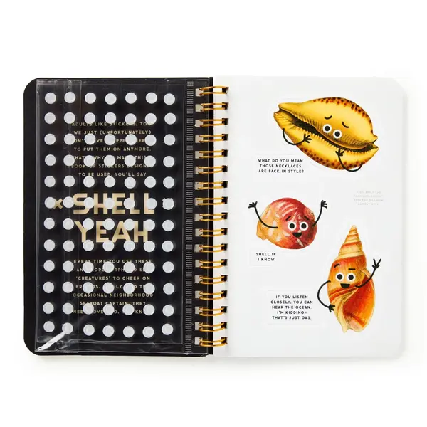 Les adultes aussi aiment les autocollants. Malheureusement, ils sont devenus trop vieux pour les albums de vignettes, et c'est précisément pour cette raison que le Shell Yeah Sticker Book existe : pour ramener le plaisir des autocollants, sans avoir besoin d'un album. Ce livre regorge de coquillages loufoques aux grands yeux et aux remarques intelligentes et impertinentes. Des coquilles Saint-Jacques insolentes aux coquillages amateurs de jeux de mots, ces autocollants sont là pour apporter un peu de plaisir de la plage dans votre vie quotidienne.