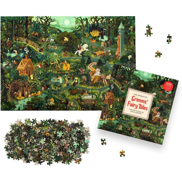 Plongez dans le monde fantastique des contes des frères Grimm avec ce puzzle de 1000 pièces. Illustré par Adam Simpson, ce puzzle reprend certains des contes les plus populaires des conteurs allemands, notamment Rumpelstiltskin, Blanche-Neige et Hansel et Gretel. Voyagez à travers la forêt et reconstituez chaque histoire !