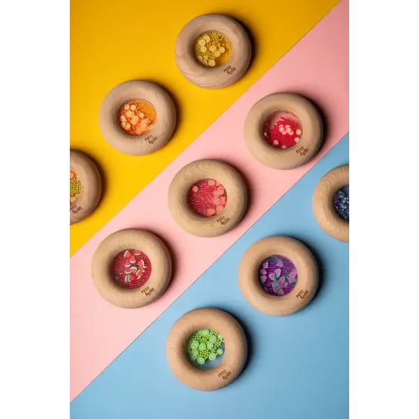 Ce jouet sensoriel ravira même les plus petits. Il s'agit d'un hochet en bois en forme de beignet, parfait pour leurs petites mains. À l'intérieur se trouvent des figurines représentant des fruits et des légumes qui, lorsque vous secouez le hochet, émettent un son irrésistible. Même s'il est tentant de les manger, ils sont fabriqués en bois de hêtre naturel, non toxique et résistant à la mastication.