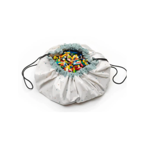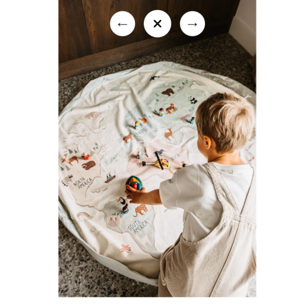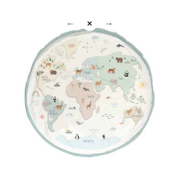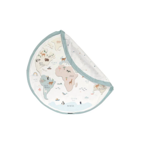 Ce sac de rangement et tapis de jeu 2 en 1 très pratique est parfait pour les petits explorateurs. Une fois déplié, il se transforme en un grand tapis de jeu avec un magnifique motif représentant la carte du monde, idéal pour que les enfants puissent jouer, apprendre et rêver de pays lointains. Vous avez fini de jouer ? En un tour de main, tirez sur la cordelette et le tapis se transforme en un sac de rangement pratique dans lequel tous les jouets disparaissent proprement. Élégant, éducatif et super pratique : l'accessoire indispensable pour chaque chambre d'enfant ou salon.