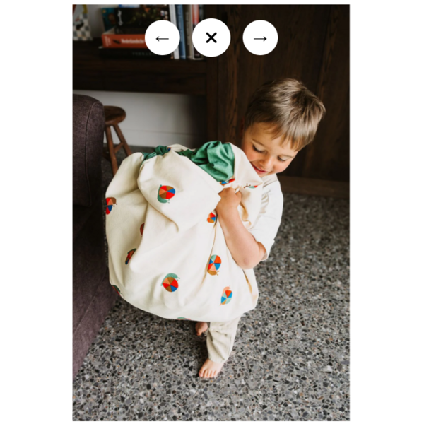 Ce sac de rangement et tapis de jeu avec un adorable motif d'escargot est parfait pour les petits amis des animaux. Le tapis offre un vaste espace de jeu où les enfants peuvent construire, jouer et laisser libre cours à leur imagination. Ils ont fini de jouer ? Il suffit alors de tirer sur la cordelette pour transformer le tapis en un sac de rangement pratique : le rangement devient un jeu d'enfant ! Ludique, fonctionnel et délicieusement discret, tout comme un vrai escargot.