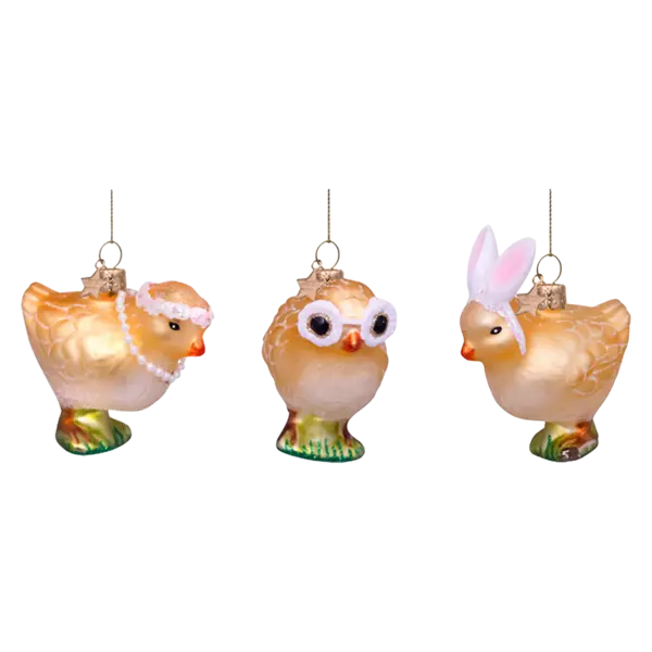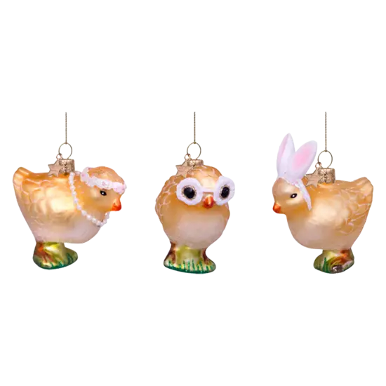 Vondels | Figurines à suspendre « Chicks Easter » en verre, H 6 cm, lot de 3