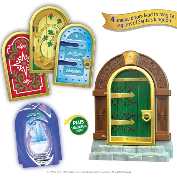 Ce passage magique permet aux assistants du Père Noël d'accéder facilement au pôle Nord pour vous apporter l'esprit de Noël ! Avec quatre ouvertures, chacune menant à une partie différente du joyeux royaume du Père Noël, votre porte à quatre volets emmène les assistants Scout Elf, les amis Elf Pets, les amis Elf Mates et TOUTES les créatures du Père Noël dans des aventures passionnantes pour vous livrer des surprises festives.