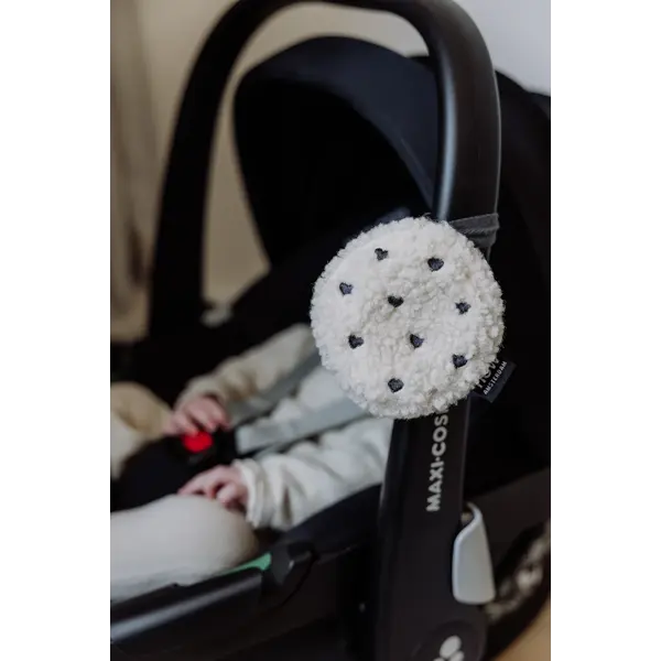Le comforter on the go est une version plus petite de notre doudou cœur. Un doudou avec une boîte à musique qui permet à votre enfant de se sentir en sécurité et calme pendant les déplacements. Vous pouvez facilement attacher le doudou à votre Maxi Cosi ou à votre poussette à l'aide du nœud. La boîte à musique propose 2 sons : battements de cœur et bruit blanc. Un bouton vous permet d'allumer la boîte à musique, de régler le volume et de choisir le son. Le bouton est extra large, ce qui le rend facile à utiliser, même lorsqu'il est intégré à la peluche.