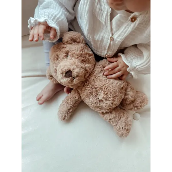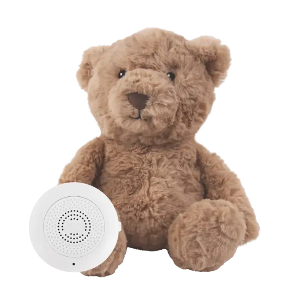 Aidez votre bébé à s'endormir et à dormir plus longtemps grâce à cette nouvelle peluche rechargeable qui reproduit les battements du cœur. Elle diffuse le son du cœur de maman, du bruit blanc, de la respiration, du bruit de la pluie et une mélodie apaisante. Grâce à la minuterie optionnelle, vous pouvez régler la durée pendant laquelle la peluche reste allumée ou si la boîte à musique reste allumée en permanence. Lorsque votre enfant se met à pleurer, la peluche se remet automatiquement en marche.