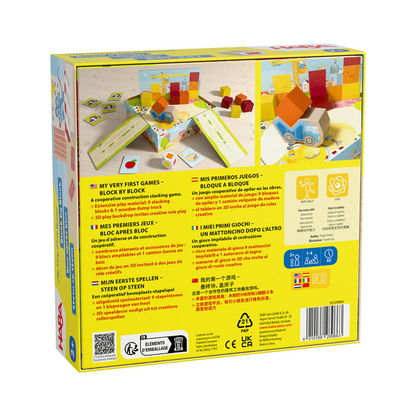 Construisez ensemble un mur solide dans ce jeu d'empilage coopératif pour les jeunes maîtres d'œuvre ! Brique sur brique de HABA allie plaisir du jeu, coopération et motricité fine. Avec un camion à benne basculante en bois, 9 blocs empilables robustes et un décor 3D attrayant, vous créerez un chantier animé plein d'imagination et de jeux de rôle. Idéal comme première expérience de jeu pour les tout-petits et les enfants en bas âge.