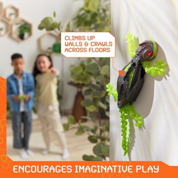 Faites peur à vos amis et à votre famille avec le HEX BOTS Wall Crawler Gecko ! Ce lézard robot hyperréaliste fera hurler tous ceux qui ont peur des insectes ou des bestioles rampantes ! Regardez votre Gecko courir sur le sol et grimper aux murs, comme un vrai gecko ! Une télécommande entièrement fonctionnelle permet un jeu intuitif, car vous pouvez le contrôler exactement comme vous le souhaitez, et grâce à ses yeux LED, le Wall Crawler Gecko se distingue dans l'obscurité ! Le corps est en plastique dur, avec du silicone pour les membres et la queue ! Ce jouet RC pour garçons a une portée de 8 mètres et est livré avec 1 câble USB, pour que vous puissiez vous amuser sans fin avec les jouets rampants de HEX BOTS ! Fonctionne avec 2 piles AAA, non fournies. Ces robots jouets pour garçons sont indispensables dans votre collection de jouets sympas pour les garçons de 4 à 6 ans. Élargissez votre collection de figurines et de sets de jeu, de jouets à construire, de jouets STEM, de voitures RC et de jeux de combat avec la robotique HEX BOTS !