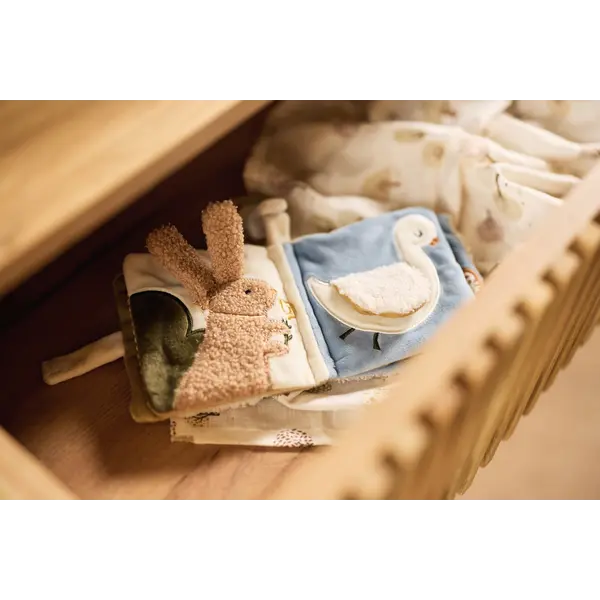 Ce livre d'activités tout doux de la collection Tiny Park a été spécialement conçu pour stimuler les sens de votre bébé. Il compte quatre pages, chacune représentant un adorable animal, tel qu'un lapin, un oiseau, un canard ou un cygne. Les pages sont remplies de matériaux craquants qui invitent à la découverte et au jeu. Un miroir et des petits arbres sur les différentes pages rendent le livre encore plus intéressant. Un jouet parfait pour stimuler les sens et la motricité de votre tout-petit !