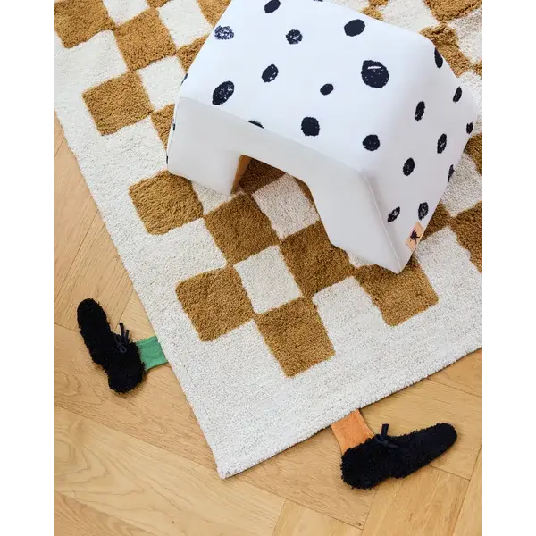 « Tout est en désordre et je ne trouve rien », ce tabouret arbore un motif inspiré de Lilla Gubben, le cheval de Fifi Brindacier. Avec ses côtés légèrement arrondis, il dégage une atmosphère accueillante, ce qui en fait un meuble pratique et polyvalent pour n’importe quelle pièce. Parfait comme siège, pour reposer ses pieds ou comme touche décorative : ce tabouret apporte une touche ludique à votre intérieur. Le tabouret est entièrement rembourré et capitonné à l’intérieur comme à l’extérieur. Le dessous du tabouret est d'une couleur orange contrastante, ce qui apporte une touche de couleur supplémentaire.