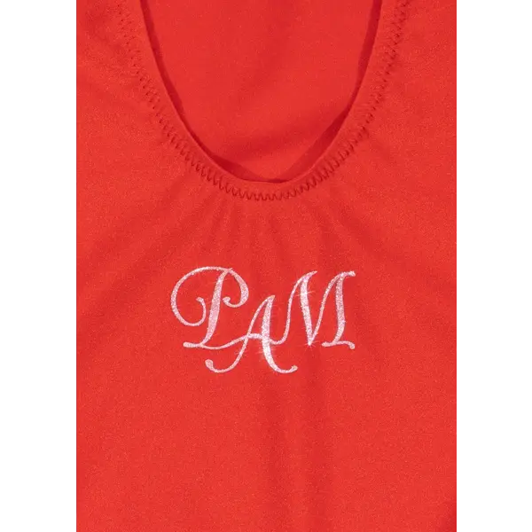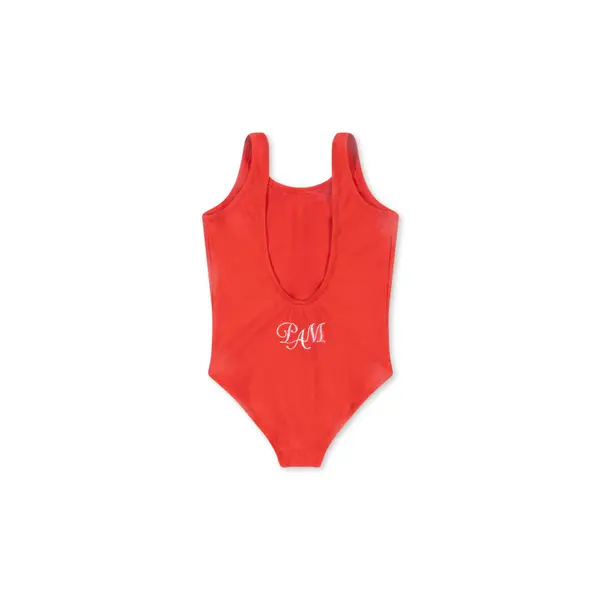 Maillot de bain avec dos échancré et inscription « Pam » pailletée dans le dos.