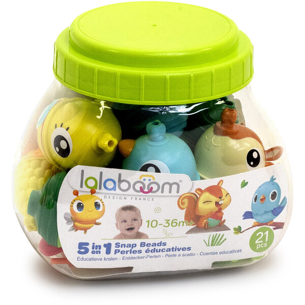 Perles éducatives comprenant 3 perles représentant des animaux (lapin, oiseau et écureuil). 21 pièces. Convient aux enfants de 10 mois à 3 ans. Votre enfant peut assembler les perles et tous les autres jouets Lalaboom pour créer des possibilités de jeu infinies. Les perles Lalaboom passent au lave-vaisselle.