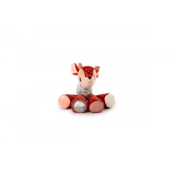 Stella, la petite biche, étire ses pattes pour le plus grand plaisir des petites oreilles. Elle craque, cliquette, tinte... et quand on appuie sur son ventre, le petit oiseau gazouille.
