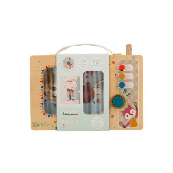 Votre enfant adorera utiliser sa boîte à musique à sa guise. Pas d'écran ici, mais de jolies illustrations et des boutons colorés qui l'invitent à imaginer qu'il ou elle contrôle sa propre radio. En tournant le bouton, votre enfant découvre les joies de la musique et développe sa motricité fine.