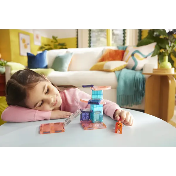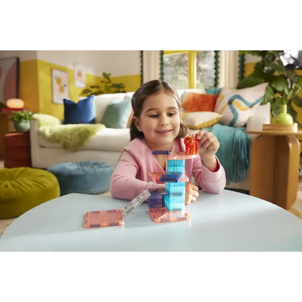 Qu'ils conçoivent des meubles ou créent un monde félin imaginaire, les enfants profiteront pendant des heures d'un jeu créatif et pratique, aussi amusant qu'éducatif. Combinez-le avec le set MAGNA-TILES Hamster Ball pour des aventures passionnantes entre différentes espèces animales ou combinez-le avec le MAGNA-TILES Pet Playhouse pour construire un paradis entièrement interactif pour les animaux de compagnie.