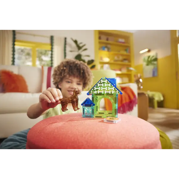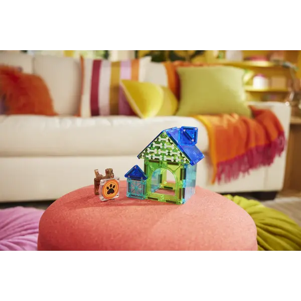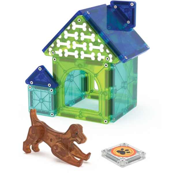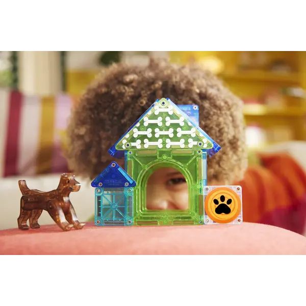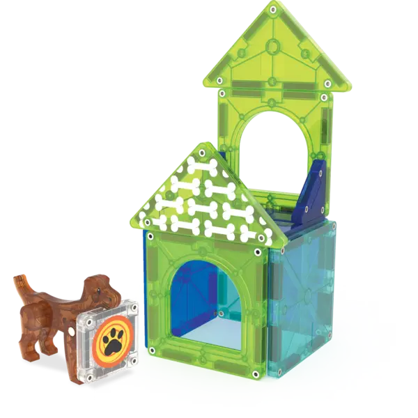 Parfait seul ou en combinaison avec les sets MAGNA-TILES Cat Tree ou MAGNA-TILES Hamster Ball pour un monde entièrement interactif sur le thème des animaux de compagnie. Combinez-le avec le MAGNA-TILES Pet Playhouse pour des constructions encore plus grandes et des jeux encore plus imaginatifs. Regorgeant de possibilités pour stimuler la créativité, raconter des histoires et découvrir le plaisir de la conception, le Dog House Set offre une multitude de possibilités !