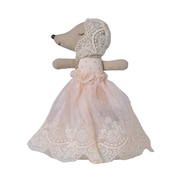 Caractéristiques de ce Maileg | Bébé souris en robe poudre :