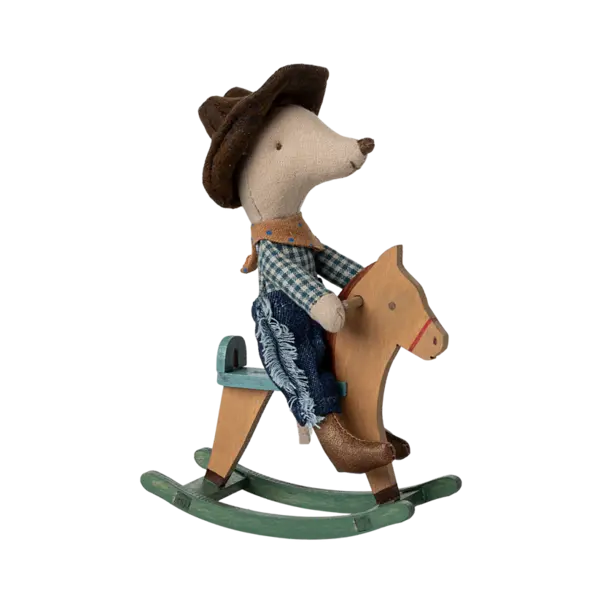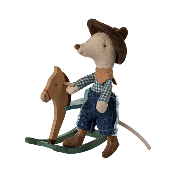 Maileg | Souris cow-boy sur cheval à bascule, Petit frère