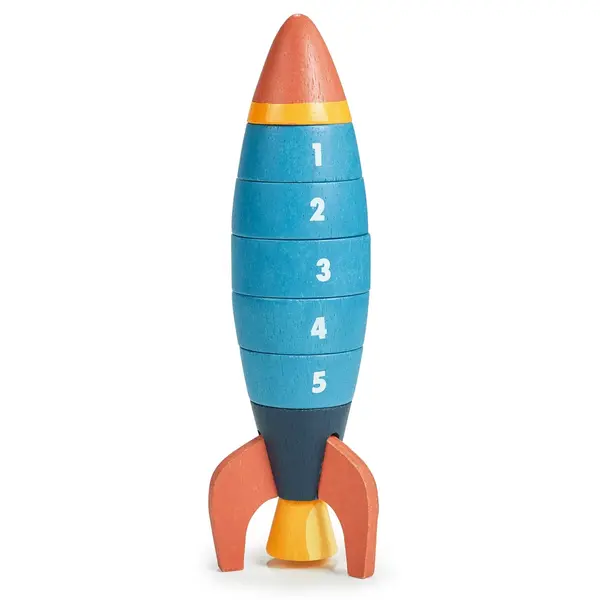 Un jouet classique à empiler des anneaux où il faut empiler et placer les formes dans le bon ordre pour former une fusée colorée. Une fois correctement assemblé, les chiffres 5, 4, 3, 2, 1 apparaissent de bas en haut et chaque anneau comporte le nombre correspondant d'étoiles imprimé au dos.