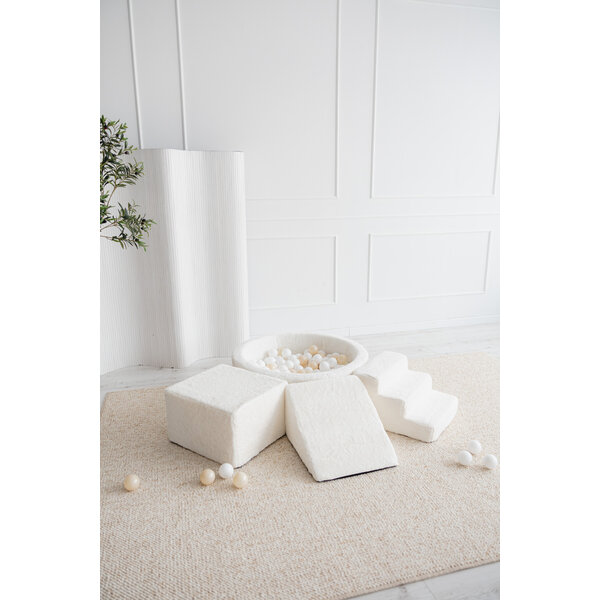Le set se compose de quatre éléments de formes différentes, parfaits pour grimper, rouler, construire, glisser ou se détendre. Seul ou en combinaison avec une piscine à balles : plaisir de jouer garanti !