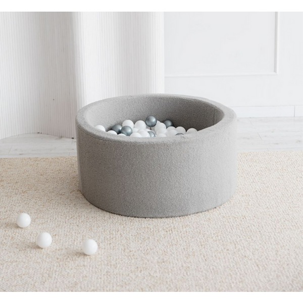 Doux, moderne et irrésistible – piscine à balles bouclé avec rebord surélevé.