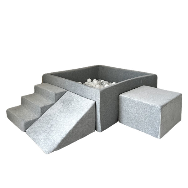 Moje | Velours doux 3 éléments + piscine à balles - Gris 106 x 106 x 40 cm + 400 balles