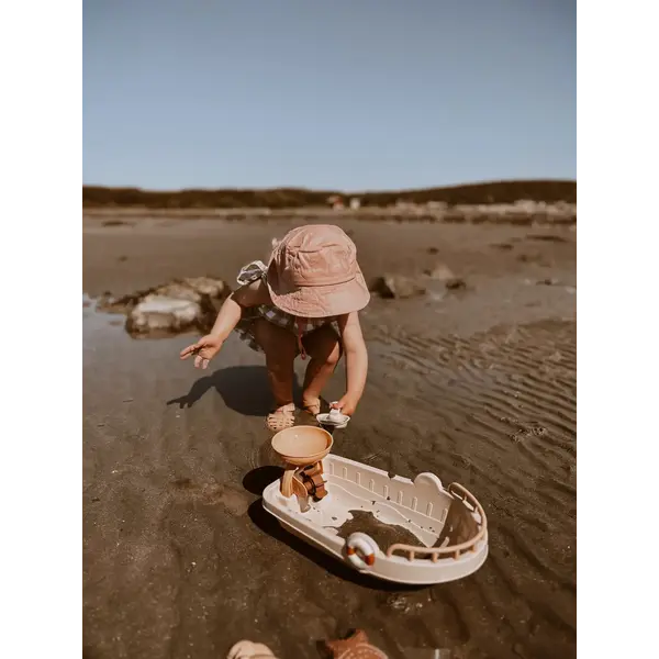 Ce set de jouets de plage estival, spécialement conçu pour les bébés et les enfants, est fabriqué à partir de bouteilles recyclées et se compose de 14 pièces qui feront partie des aventures imaginatives des plus petits : 4 pelles, 6 moules, 1 arrosoir, 1 seau, 1 moulin à eau et 1 bateau.